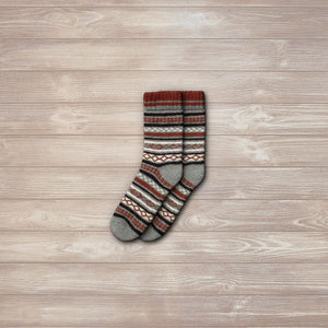 Let the flames warm your soul and the words your mind while the Bjorn sock set does the same for your feet. Subdued nudes and browns are enhanced by pastel blue and white accents paired with a classic Nordic pattern of stripes, crosses, and checks.