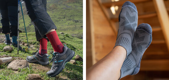Our hiking socks are made from a balanced mix of premium Merino wool and performance fibers. The result? All-day comfort with less moisture, fewer blisters, no bulk, and no itch.