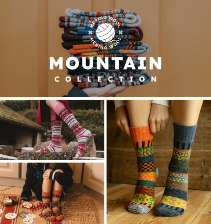 Our Mountain Collection socks range are made with Merino wool, which makes them extra warm, comfort, breathable and sweat wicking. These socks fit well in mountain footwear, in normal boots and shoes, which makes them suitable for daily wear also for those more sensitive to low temperatures.